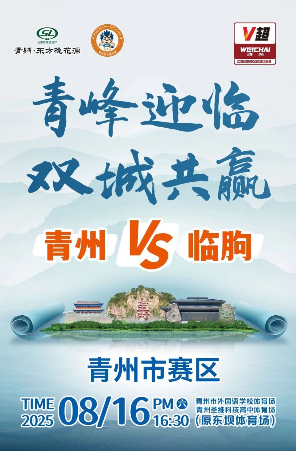 直播预告!8月16日16-30“V超”青州vs临朐,多平台同步直播